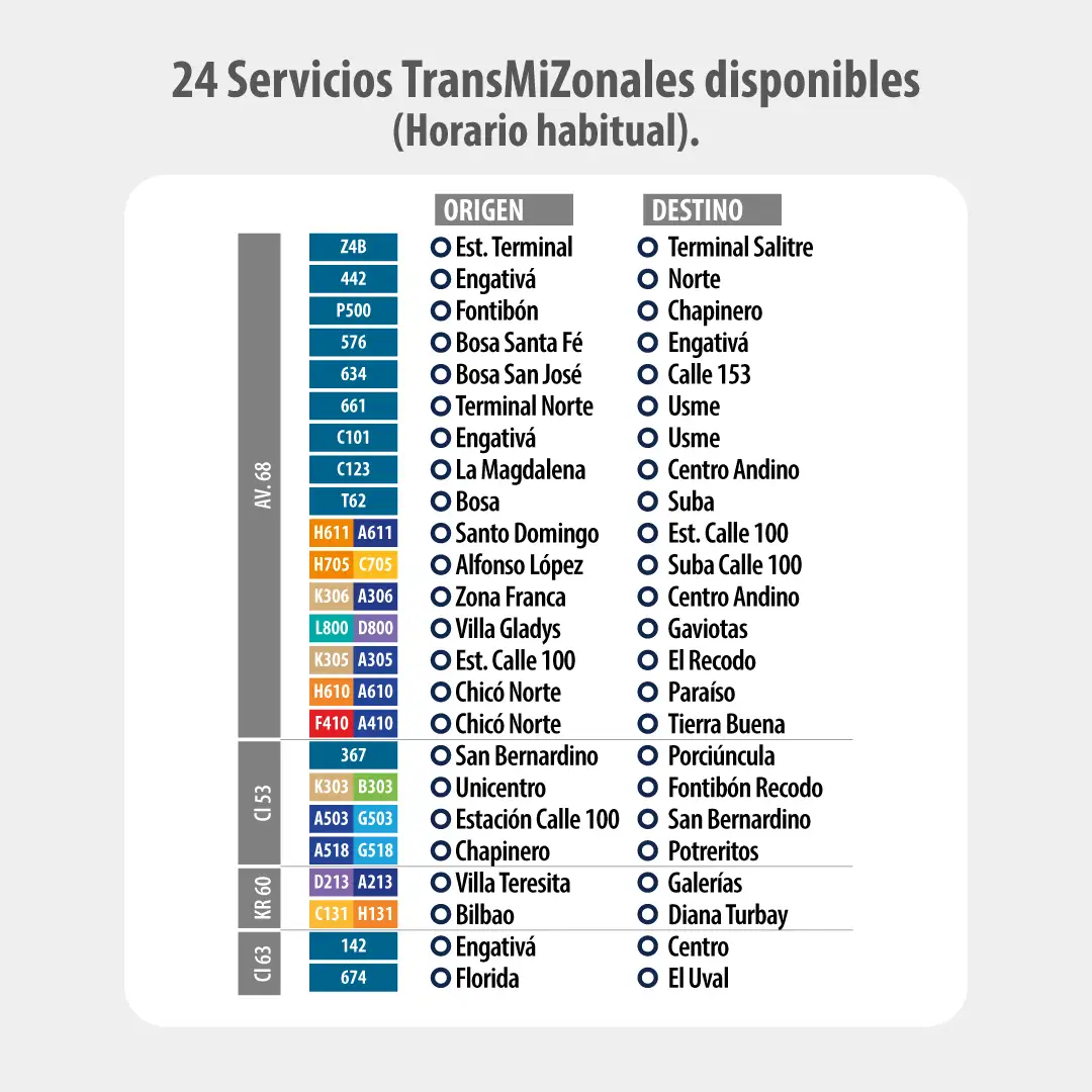 En paralelo, las rutas zonales cubrirán sectores de la Avenida 68, la Carrera 60 y las Calles 53 y 63, para conectar los principales corredores con el área del concierto.