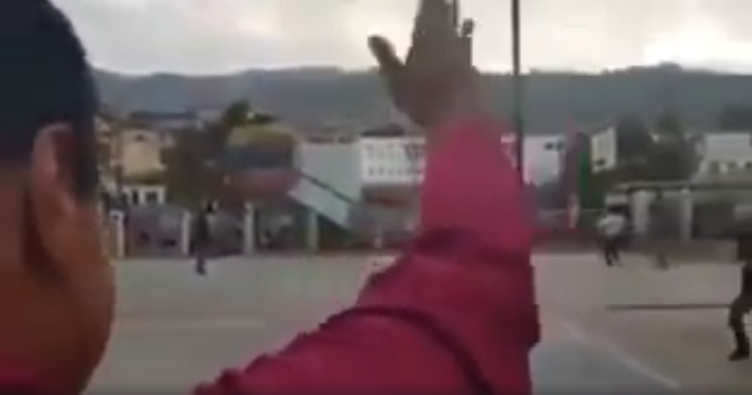 Un video registra el momento en el que el presidente de Venezuela Nicolás Maduro saluda como si hubiera multitudes aplaudiéndolo al sonido de timbales, pero las imágenes demuestran lo contrario: no se ve a nadie esperándolo o arengándolo.